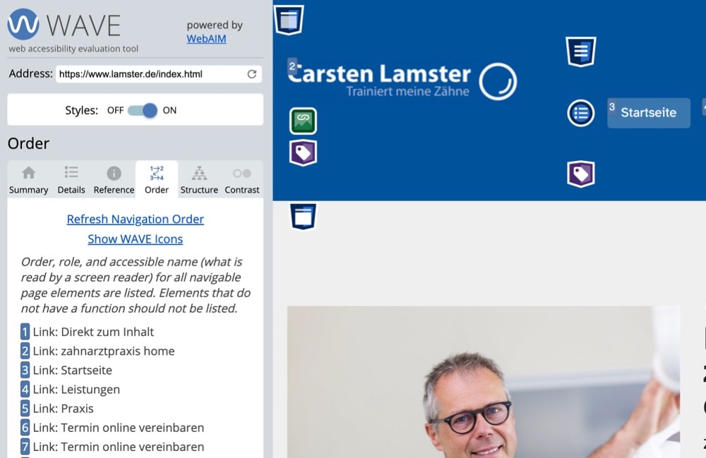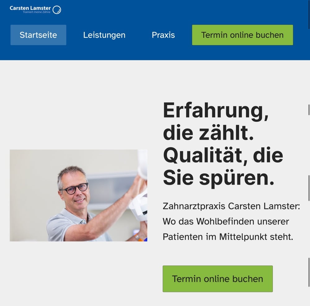 Überzeugen Sie sich von der gelungenen Umsetzung: Website der Zahnarztpraxis Carsten Lamster.