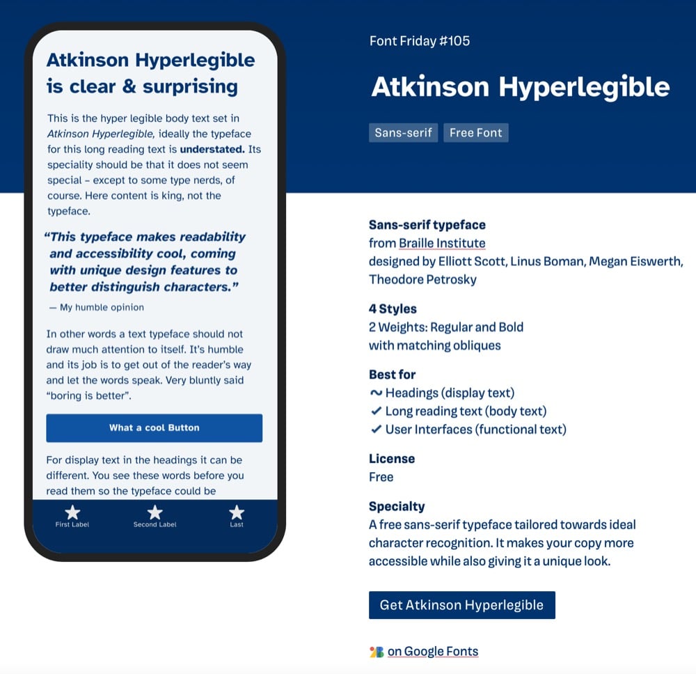 Besonders wichtig war, die Praxis-Website barrierefrei zu gestalten. Beim Online-Auftritt kommt daher beispielsweise die Schriftart Atkinson Hyperlegible zu Einsatz, die für ihre hohe Lesbarkeit unter verschiedenen Sehbedingungen bekannt ist.